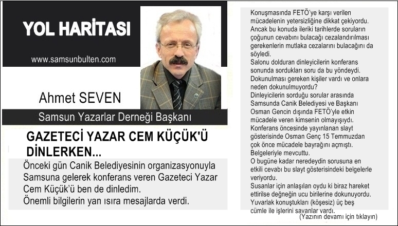 Önceki gün Canik Belediyesinin organizasyonuyla Samsuna gelerek konferans veren Cem Küçük'ü ben de dinledim.