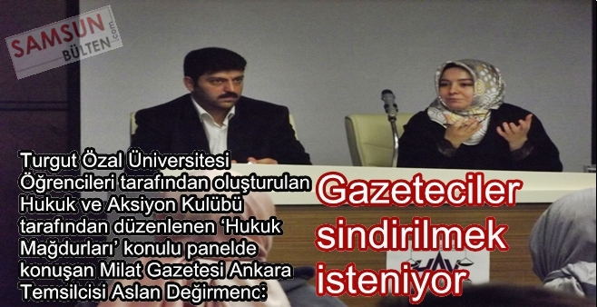 Hukuk ve Aksiyon Kulübü tarafından düzenlenen ‘Hukuk Mağdurları’ konulu panel, ‘Turgut Özal Üniversitesi’nde gerçekleştirildi. Panele Turgut Özal Üniversitesi Hukuk Fakültesi Dekan Yardımcısı Yrd. Doç. Dr. Ömer Lütfü Peker, Prof. Dr. Ali Şafak ve çok sayıda öğrenci katıldı. Panelde, Mazlumder Ankara Şube Başkanı Avukat Şerife Gül Arıman ile Milat Gazetesi Ankara Temsilcisi Aslan Değirmenci konuşmacı olarak yer aldı.