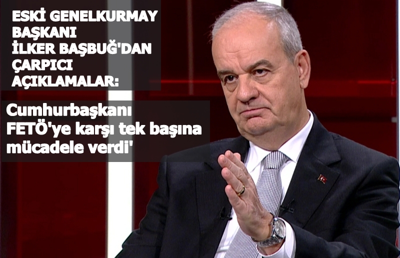 Genelkurmay eski Başkanı Emekli Orgeneral İlker Başbuğ, FETÖ ile mücadelede Cumhurbaşkanı Erdoğan'ın yalnız bırakıldığını belirterek, "2012'den bugüne kadarki dönemde, FETÖ'ye karşı şimdiki Cumhurbaşkanı tek başına mücadele veriyor. 15 Temmuz öncesindeki süreçlerde Cumhurbaşkanın bazı konularda yalnız bırakıldığı kanaatindeyim" dedi.