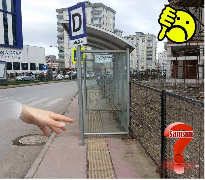 Görme Engelliler için kaldırıma yapılan yürüyüş bandının otobüs durağının içerisinden geçtiğini görenler hayretler içerisinde kalıyor. Samsun Büyükşehir Belediyesinin bu durumu görmezden gelmesine bir anlam veremediklerini söyleyen vatandaşlar burada görme engelli olanlar kim diye sormadan edemiyorlar.