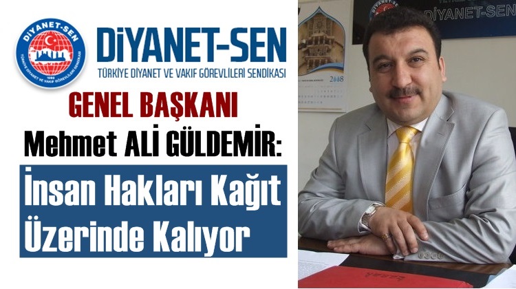 10 Aralık Dünya İnsan Hakları Günü münasebeti ile bir açıklama yapan Diyanet-Sen Genel Başkanı Mehmet Ali Güldemir İnsan Hakları Evrensel Bildirgesinin Birleşmiş Milletler Genel Kurulunda ilan edilmesinin üzerinden 72 yıl geçmiş ancak bu belge insanlığın hiçbir mağduriyetine çare olmamış, kağıt üzerinde kalmıştır dedi.