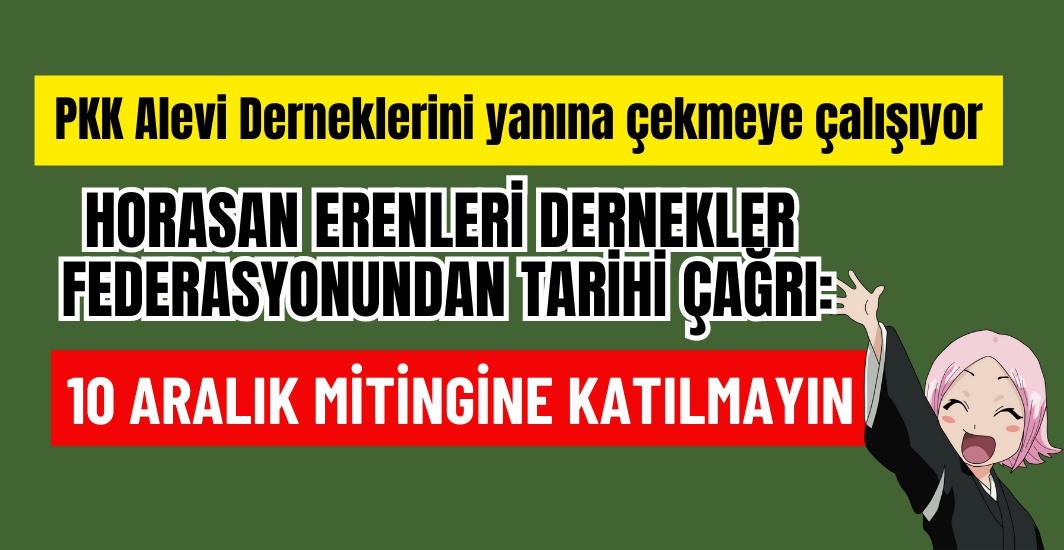 Alevi Bektaşi Federasyonu, Alevi Dernekleri Federasyonu, Alevi Kültür Dernekleri, Anadolu Alevi Canlar Federasyonu, Avrupa Alevi Birlikleri Konfederasyonu, Cem Vakfı, Hacı Bektaş Veli Anadolu Kültür Vakfı ve Pir Sultan Abdal Kültür Derneği'nin 10 Aralık'ta İstanbul Kadıköy'de terör örgütü PKK'nın Alevi-Bektaşi camiasına sızma aygıtı olan "Demokratik Alevi Dernekleri (DAD)" isimli oluşumla birlikte, “Laik eğitim, insanca yaşam, demokratik Türkiye” adıyla düzenleyeceği mitinge katılmayınız.