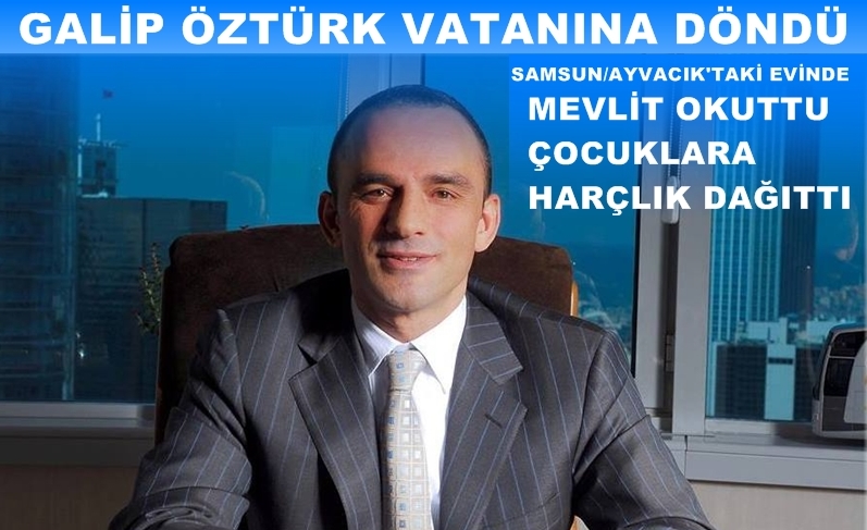 Memleketine dönen Galip Öztürk Samsunun Ayvacık İlçesine bağlı Balahur Köyündeki baba ocağında mevlit okutup, çocuklara harçlık dağıttı.