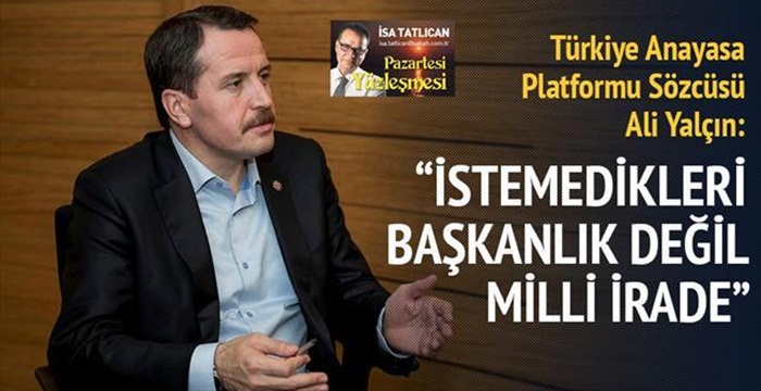 Türkiye Anayasa Platformu Sözcüsü Ali Yalçın: Cumhurbaşkanı ve başbakan farklı siyasi gelenekten gelseydi kriz çıkardı. İtiraz edenler aslında başkanlık sistemine değil milli iradeye karşı çıkıyor