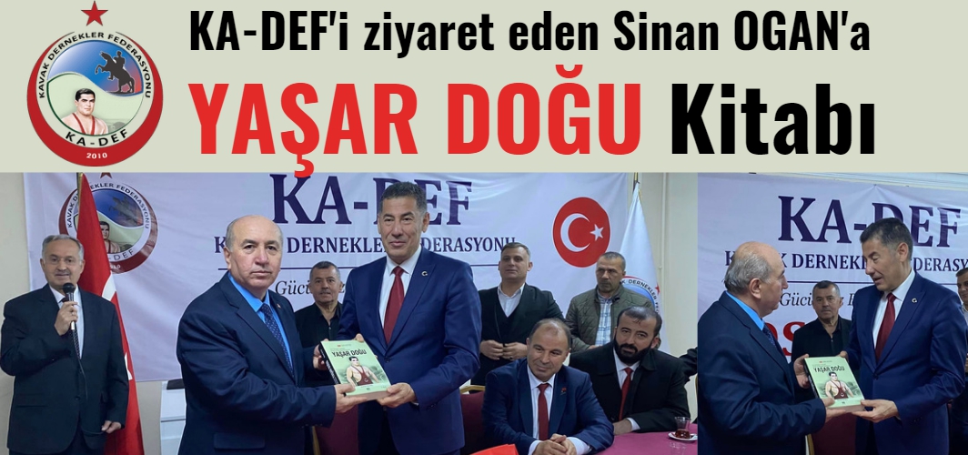 Ziyarette Kavak Dernekler Federasyonu (KA-DEF) Genel Başkanı Bayram Erişgin günün anısına Ata İttifakı Cumhurbaşkanı Adayı Sinan Ogan'a Türk Güreşinin Sembol ismi Dünya'da 'Türk Gibi Kuvvetli' Sözünün temsilcisi Dünya ve Olimpiyat Şampiyonu Yaşar Doğu'nun hayatını anlatan kitabı hediye etti.