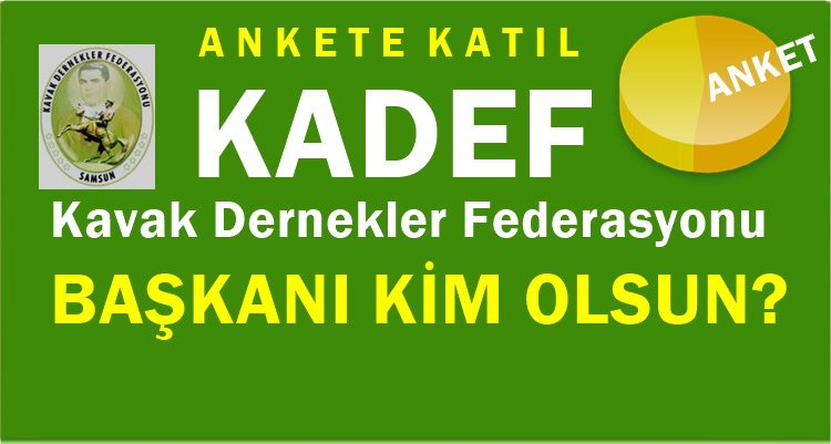 Kavak Dernekler Federasyonu KADEF için senin adayın kim ya da başkan kim olsun anketini yayınladık. Ankete oy kullanarak şimdiden genel kanaatin oluşması açısından yardımcı olmanızı istiyoruz.