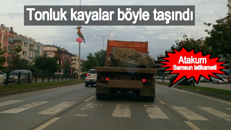 07.10.2016 Cuma günü 17 sularında Atakum Samsun istikametine giden kamyondaki dev kayalar için herhangi bir tedbir alınmaması şaşırttı.