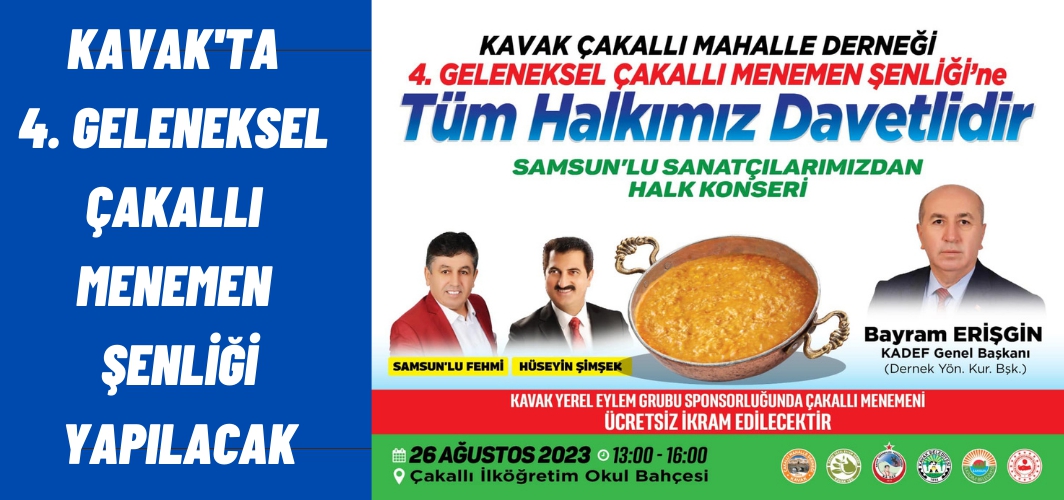Bu yıl 4. gerçekleşecek olan Çakallı Menemen Şenliği ile ilgili bilgi veren Çakallı Derneği Başkanı Bayram Erişgin tüm vatandaşlarımızı 26 Ağustos 2023 Cumartesi Günü 13.00-16.00 saatleri arasında gerçekleştireceğimiz Menemen şenliğimize davet ediyoruz dedi.