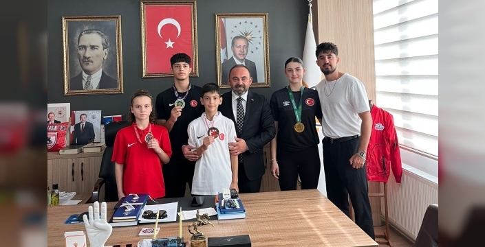Kavak'ta taekwondo müsabakalarında dereceye giren başarılı sporcu öğrenciler, AK Parti Kavak İlçe Başkanı Onur Bakır'ı makamında ziyaret ederek, elde ettikleri başarıları paylaştı.