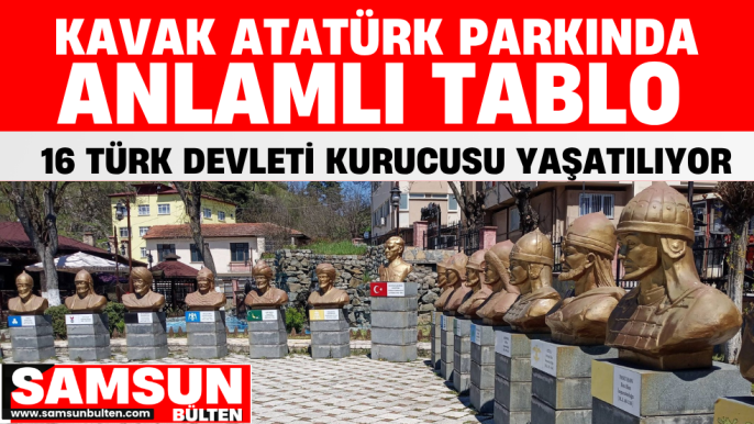 SAMSUN - Tarihi geçmişi MÖ Tunç Çağına kadar uzanan ve kadim medeniyetlerin izlerini taşıyan Kavak ilçesi, şanlı Türk tarihini gelecek nesillere aktarmaya devam ediyor. Kavak Belediyesi bünyesinde bulunan Atatürk Parkı, tarihte iz bırakan 16 Türk Devleti’nin kurucularına ait büstlerle adeta bir açık hava müzesine dönüştü.