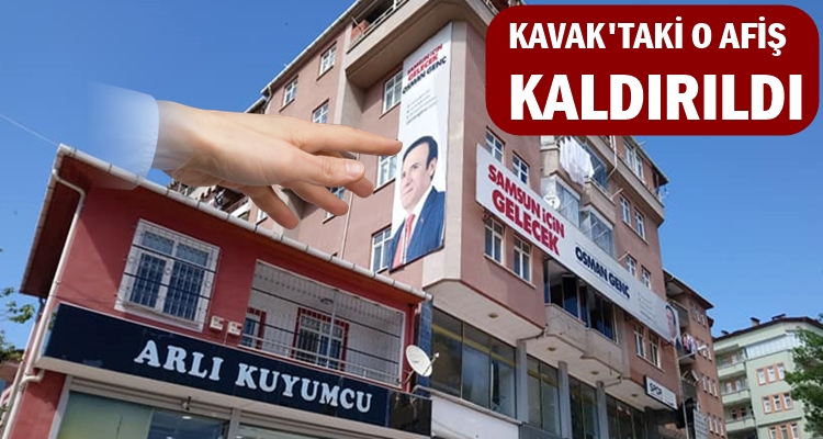 Kavak'ta bulunan tek afiş ise bugün Belediye ekipleri tarafından tamamen sökülerek kaldırıldı.