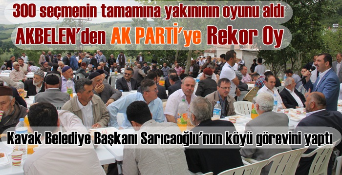 Kavak Belediye Başkanı İbrahim Sarıcaoğlu'na 1 Kasım 2015 genel seçimlerinde doğduğu Akbelen mahallesinden (köyünden) rekor destek geldi.