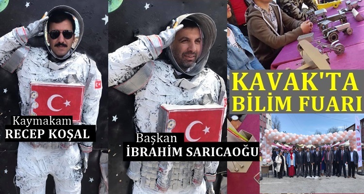Kaymakam Recep Koşal ve Belediye Başkanı İbrahim Sarıcaoğlu günün anısına uzay astronotunu temsil eden maketin içinde hatıra fotoğrafı çekinerek fuara anlam ve renk kattılar.