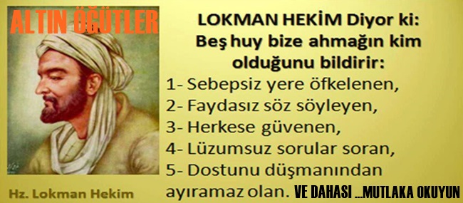 165. Bir gün Davud (as) Hz. Lokman'a " Bir koyun boğazlayıp bütün vücudunun en iyisi olan bir parça et getir."dedi. o da gidip koyunun diliyle yüreğini getirdi. Yine başka bir zamanda "Koyunun en kötüsünden bir parça et getir."dedi. yine diliyle yüreğini getirdi. Sebebini sorduğunda :" Dille yürek iyi olursa ,o kimse iyi olur; o kötü