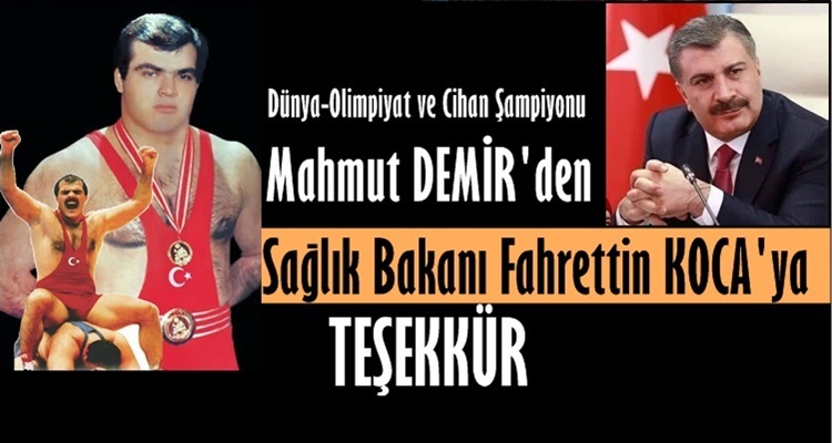 Avrupa-Dünya-Olimpiyat ve Cihan Şampiyonu Mahmut Demir sosyal medyada yayınladığı bir yazı ile Sağlık Bakanı Fahrettin Koca'ya teşekkürlerini bildirdi.