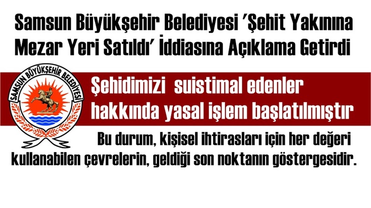 Samsun Büyükşehir Belediyesinden, "Şehit yakınına 20 bin liraya mezar yeri satıldı" iddiasına ilişkin açıklama yapıldı.
