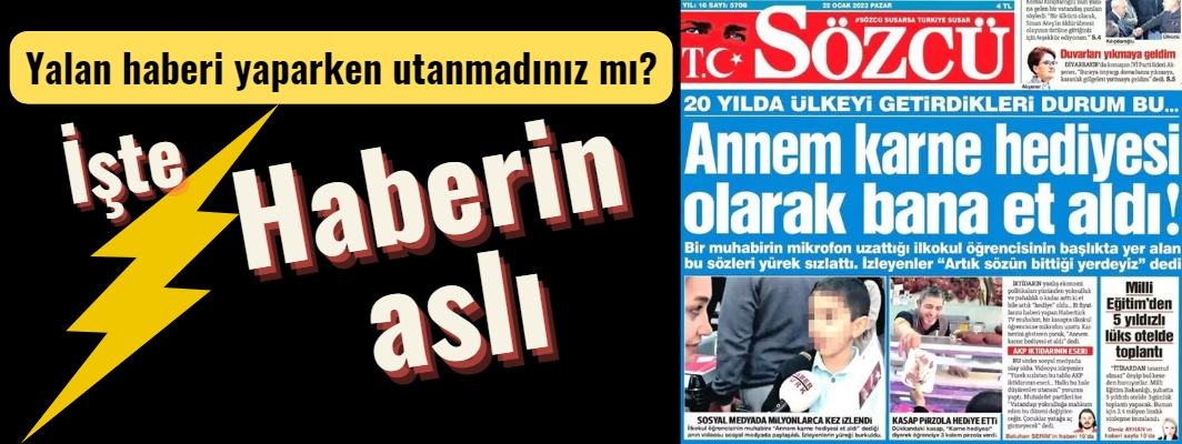İstanbul Şişli'de annesi kasaptan alışveriş yapan çocuğa mikrofon uzatan muhabir, “Annem karne hediyesi olarak et aldı” diye cevap aldı. Bu anlar sosyal medyada ve Cumhuriyet ile Sözcü gazetelerinde Türkiye'nin yoksullaştığı şeklinde lanse edildi. Anne Nihal Güney herhangi bir maddi sıkıntılarının bulunmadığını ifade ederken, Şişli'de yaşadıklarını, ev ve arabaları bulunduklarını söyledi. Nihal Güney, yalan haberlerle siyasete malzeme yapılmaktan şikayetçi olduklarını açıkladı. AK Parti Genel Başkan Yardımcısı Hamza Dağ, Meral Akşener, Muharrem İnce, Ahmet Davutoğlu ve Faik Öztrak'ın haberle ilgili paylaşımlarına tepki gösterdi. Dağ, sosyal medya hesabından yaptığı açıklamada, "Bir çocuğun tüm masumiyetiyle söylediği bir cümleyi, siyasetinize alet ederek, kirlettiniz." ifadelerini kullandı.