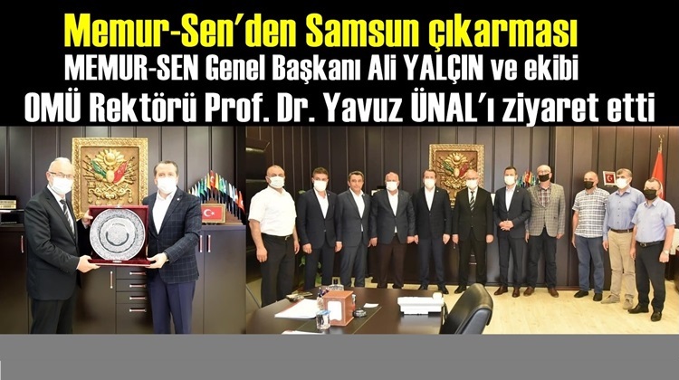 Memur-Sen Genel Başkanı ve (Eğitim Bir Sen Genel Başkanı) Ali Yalçın, Bayındır Memur-Sen Genel Başkanı Soner Can Tufanoğlu, Bem-Bir-Sen Genel Başkan Yardımcısı Nurettin Sever, Samsun Memursen Başkanı Hamdi Yıldız, Eğitim Bir- Sen 2 nolu şb. Başkanı Tevfik Demir, Sağlık-Sen şb. Başkanı İlyas Biçer, Bem Bir-Sen Sube Başkanı Savaş Gayretli Samsun Ondokuz Mayıs Üniversitesi (OMÜ) Rektörü Prof. Dr. Yavuz Ünalı makamında ziyaret etti.
