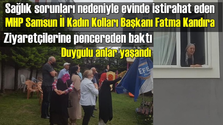 Bahçeden el sallayan ziyaretçilerle evinin penceresinden onlara bakan MHP Samsun İl Kadın Kolları Başkanı Fatma Kandıra arasında duygulu anlar yaşandığı görüldü.
