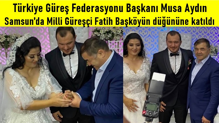 Türkiye Güreş Federasyonu Başkanı Musa Aydın, Milli Güreşçi Fatih Başköy'ün düğününe katılarak genç çifte mutluluklar diledi.