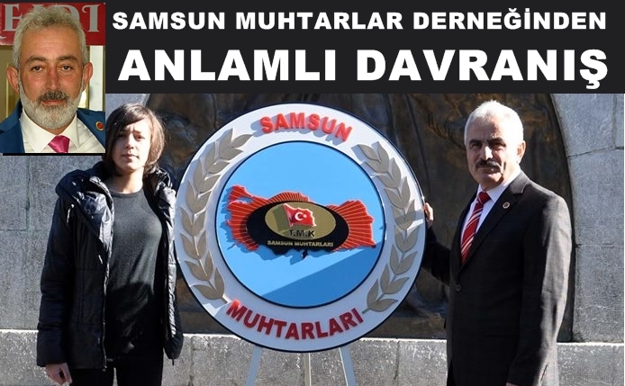 Muhtarlar Gününde Atatürk Anıtına Çelenk koyan Samsun Muhtarlar Derneği Başkanı Mustafa Öztürk kendinden beklenen anlamlı bir jest yaparak Muhtarlar Derneği Çelengini Yaşar Keklik'in kızı Seda Keklik ile birlikte bıraktı.