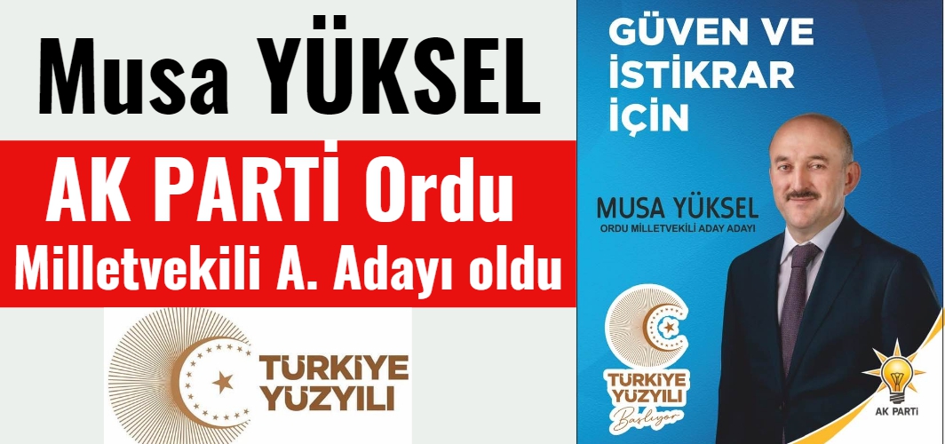 Önceki Dönem Samsun'da İlkadım Belediye Başkan Yardımcısı olarak görev yapan Musa Yüksel AK PARTİ Ordu Milletvekili A. Adayı oldu.