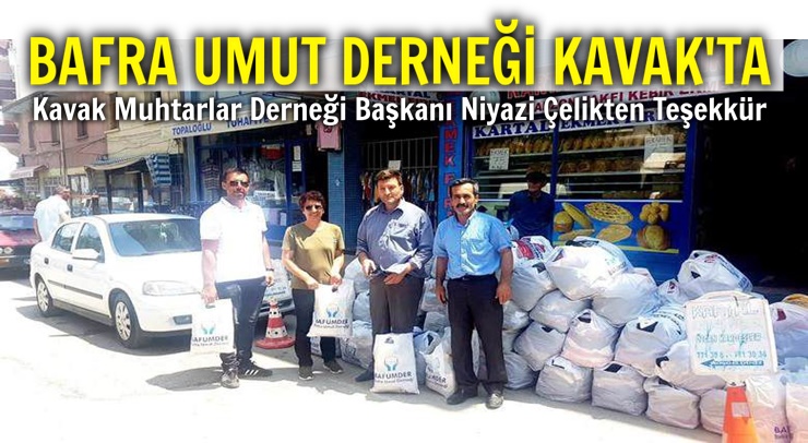 Kavak Muhtarlar Derneği Başkanı Niyazi Çelik, Bafra Umut Derneği Bafumder tarafından yardıma muhtaç çocuklarımız için giyim ve bir miktar gıda yardım malzemelerini ihtiyaç sahiplerine ulaştırmak üzere Ladik ilçemizde teslim aldık. Bir kısmını Ladik ilçemizde belirlenen ihtiyaç sahiplerine ulaştıracağız. Kalanları da Kavak ilçe ve mahallelerine dağıtacağız. Yardımlarda emek sarf eden Bafra Umut Derneği Başkanı Hülya Yangın Ertekine, araç tahsis eden Samsun Büyükşehir Belediyesi yetkililerine teşekkür ediyorum. dedi.
