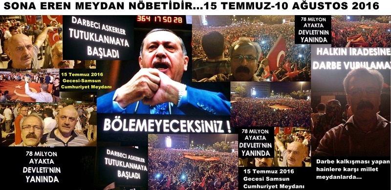 Meydanlarda tutulan demokrasi nöbetlerinde vatan millet ve bayrak sevdasından başka hiçbir beklentisi olmayan samimi insanlarımızı bir kez daha candan kutluyorum. Allah hepsinden razı olsun.