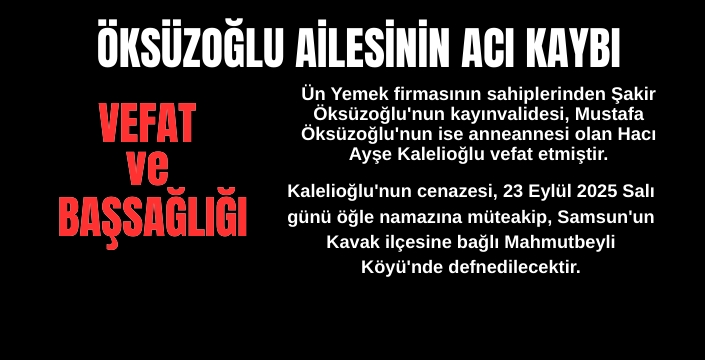 Ün Yemek firmasının sahiplerinden Şakir Öksüzoğlu'nun kayınvalidesi, Mustafa Öksüzoğlu'nun ise anneannesi olan Hacı Ayşe Kalelioğlu vefat etmiştir.