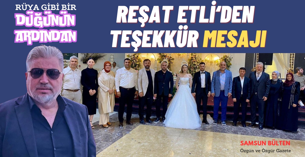 Samsun'un sevilen isimlerinden Canik Belediyesi Meclis Üyesi İş Adamı Reşat Etli, kızı Betül ile damadı Furkan Yılgın'ın Rüya Park Düğün Salonunda gerçekleşen düğün merasimlerinin ardından bir teşekkür mesajı yayınladı.