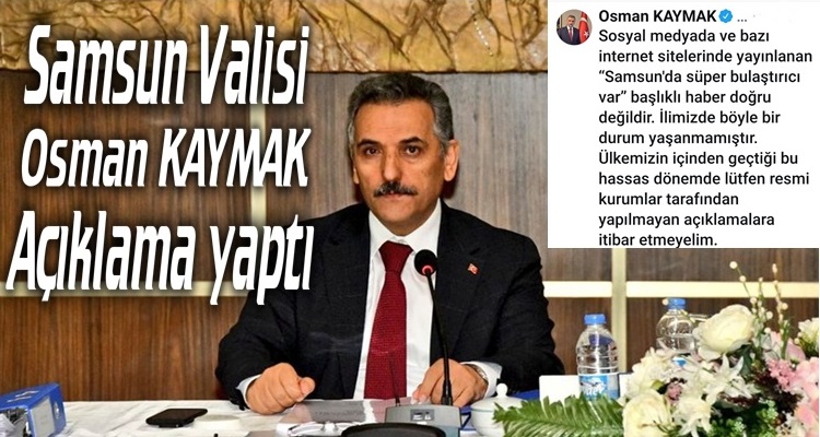 Sosyal medyada ve bazı internet sitelerinde yayınlanan Samsun'da süper bulaştırıcı var başlıklı haber doğru değildir. İlimizde böyle bir durum yaşanmamıştır. Ülkemizin içinden geçtiği bu hassas dönemde lütfen resmi kurumlar tarafından yapılmayan açıklamalara itibar etmeyelim.