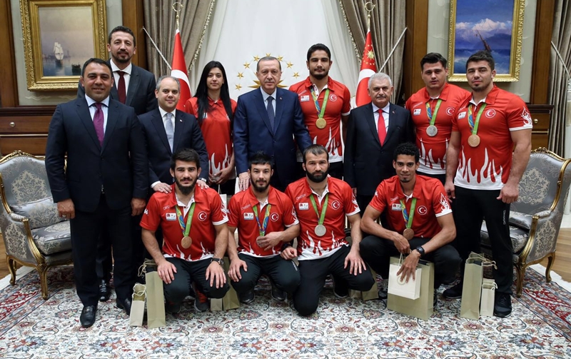 Cumhurbaşkanı Erdoğan, Rio 2016 Olimpiyat Oyunları'nda madalya kazanan Türk sporcuları Külliye'de kabul etti.