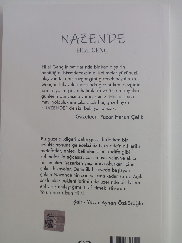 Samsunlu Şair/Yazar Hilal Genç'in Nazende isimli öykü kitabı yayınlandı.