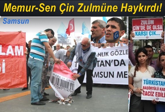 Memur-Sen Samsun Şubesi üyeleri, Çin halk Cumhuriyeti'nin Doğu Türkistan'da yaşayan Müslüman Uygur Türkleri'nin dini vecibelerini yerine getirmesini yasakladığını belirterek eylem yaptı. Kurtuluş Yolu'nda gerçekleştirilen eyleme yaklaşık 200 kişi katıldı. Grup, ellerinde Doğu Türrkistan ve Türk bayrakları taşıdı. Basın açıklamasının ardından eylemciler üzerinde 'Made in China' yazılı afişi yaktı. Ardından Uygur Türkleri için dua edildi.