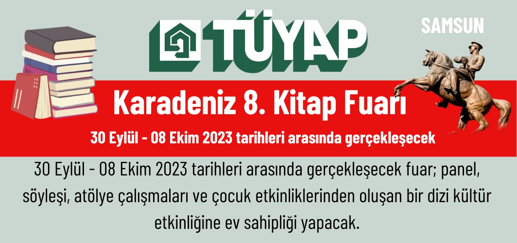 Türkiye'nin en büyük ve prestijli kitap fuarlarından birisi olan Karadeniz 8. Kitap Fuarı bu yıl 30 Eylül - 8 Ekim 2023 tarihleri arasında gerçekleşecek.