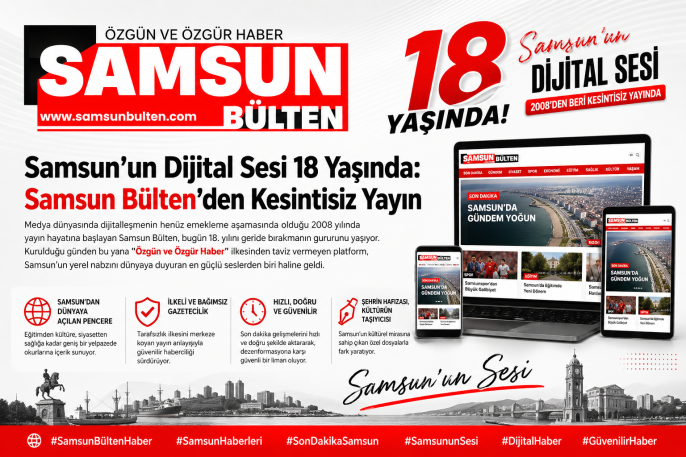 SAMSUN – Medya dünyasında dijitalleşmenin henüz emekleme aşamasında olduğu 2008 yılında yayın hayatına başlayan Samsun Bülten, bugün 18. yılını geride bırakmanın gururunu yaşıyor. Kurulduğu günden bu yana "Özgün ve Özgür Haber" ilkesinden taviz vermeyen platform, Samsun’un yerel nabzını dünyaya duyuran en güçlü seslerden biri haline geldi.