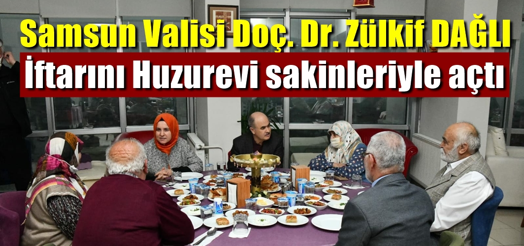 Samsun Valisi Doç. Dr. Zülkif Dağlı ve eşi Nurgül Dağlı hanımefendi, Ladik Kaymakamı Ahmet Raşit Orhan, Ladik Belediye Başkanı Nurhan Yapıcı Özel, Aile ve Sosyal Hizmetler İl Müdürü Tekin Balcı ve protokol üyeleriyle birlikte, Ladik ilçemizde bulunan Kemal Kaplan Huzurevi sakinleriyle iftar yemeğinde bir araya geldi.
