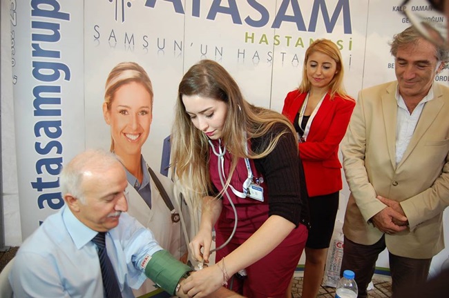 Açılış sonrası fuar alanında yer alan standları ziyaret eden Şahin Atasam Hastanesi standında tansiyonunu ölçtürdü. Tansiyonu normal değerlerde çıkan Şahin, Atasam Hastanesi hakkında bilgi aldı. Kendisi ile ilgili bir sağlık sırrını da açıklayan Şahin, kalbinin sağ tarafında yer aldığını söyledi. Tansiyonunu ölçen hemşireye ve Atasam hastanesi temsilcilerine teşekkür eden Samsun Valisi İbrahim Şahin, fırsat bulduğu bir zamanda hastaneye gelip check-up yaptırmak istediğini söyledi.