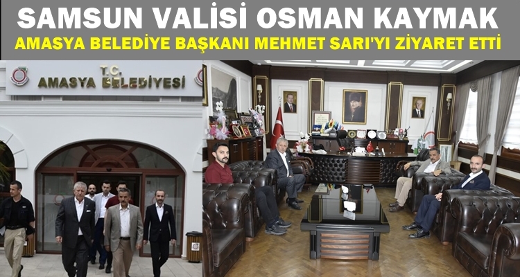 Bir dizi programlara katıldıktan sonra Amasya Belediye Başkanı Mehmet Sarıyı makamında ziyaret eden Samsun Valisi Osman Kaymak Başkan Sarı'ya görevinde başarılar diledi.