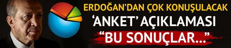 Bazı anketlerin manipülasyon için kullanıldığına şahit olduğunu söyleyen Cumhurbaşkanı Erdoğan, "Biz yine anket yapıyoruz ama biz kendimiz yapıyoruz. Yolumuzu ve yolculuğumuzu şekillendiriyoruz. Ama nereye kadar bunlara güveniyorsunuz derseniz artık bundan 4-5-6 seçim öncesi anket ciddiyetleri kalmadı" dedi.