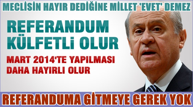 Referandumun halka külfet getireceğini ifade eden Bahçeli, ''O yolu tercih etmek yerine yerel seçimlerin 29 Mart 2014'te yapılması halkımız için daha hayırlı olur'' diye konuştu.