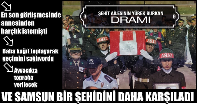 Tunceli’de PKK’lı teröristlerin karakola düzenlediğ saldırıda şehit olan jandarma komando er Mustafa Akar’ın cenazesi, memleketi Samsun’a getirildi. Şehit babasının, ailesinin geçimini kağıt toplayarak sağladığı, oğluna da bu kazandığı paradan harçlık gönderdiği belirtildi.