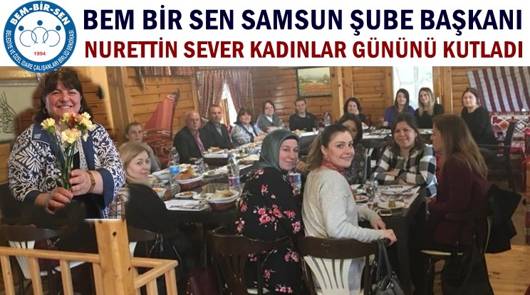 Yemekte bir konuşma yapan BEM BİR SEN Samsun Şube Başkanı Nurettin Sever; "Günümüz de kadınların her alanda başarılı adımlar atarak sosyal hayata katkıda bulunması hepimizi son derece sevindirmektedir. Eğer iyi araştırılıp incelenirse bütün başarıların temelinde kadınların olduğu görülecektir. Bize düşen onların daha iyi yerlere gelmesine yardımcı olmaktır. Kadını mutlu ve başarılı olan bir toplumun tüm fertleri mutlu ve başarılıdır. Bu özel günde şunları da ifade etmek istiyorum. Kadına yapılan haksızlık toplumun tümüne yapılan haksızlık gibidir. Ona kaldırılan el toplumun tümüne kaldırılmış demektir. Bu hususta herkesi her zamankinden daha duyarlı olmaya davet ediyorum. Bu vesile ile günlerinizi kutluyorum" diyerek konuştu.