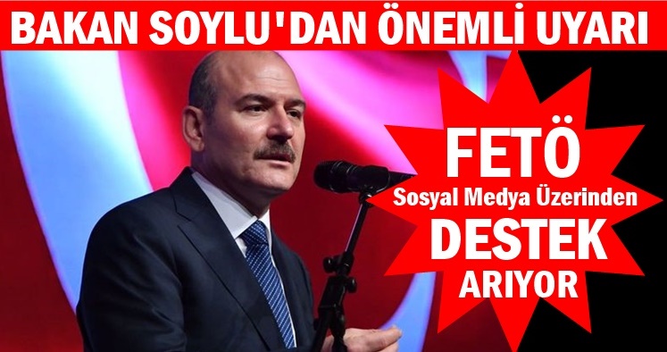 İçişleri Bakanı Süleyman Soylu, "Ülke içinde tehdit oluşturabilecek FETÖ hücreleri bulunuyor. FETÖ süübnliminal mesajlarla darbe çağrısı yapmaya devam ediyor. FETÖ sosyal medya üzerinden destek arıyor" dedi.