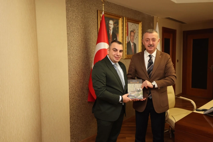 Aynı zamanda Samsun Bülten yazarı'da olan Tarihçi Yazar Eldar Uka Kocaeli Büyükşehir Belediye Başkanı Tahir Büyükakın'a "Bir Medeniyet Izinde Balkanlar" isimli kitabını hediye etti.