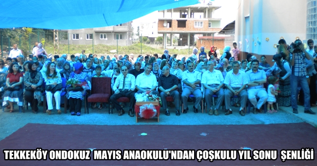 TEKKEKÖY ONDOKUZ MAYIS ANAOKULU'NDAN ÇOŞKULU YIL SONU ŞENLİĞİ Tekkeköy Ondokuz Mayıs Aanaokulu 2011-2012 eğitim ve öğretim yılını coşkulu bir şenlikle kapattı. Yıl sonu şenliğine Tekkeköy Kaymakamı Sayın KÖKSAL ŞAKALAR, mülki amirler, öğrenci velileri ve vatandaşlar katıldı. Programa protokol üyelerine minikler tarafından çiçek takdim edildi.