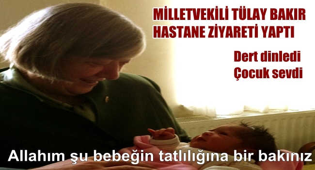 Milletvekili Prof. Dr. Tülay Bakır Samsun Kadın Doğum ve Çocuk Hastanesinde Kadın ve Bebek hastalarını ziyaret ederken kucağına aldığı çocuğu bir süre sevdi. Sonrada Allahım şu bebeğin tatlılığına bir bakınız diyerek duygularını dile getirdi.