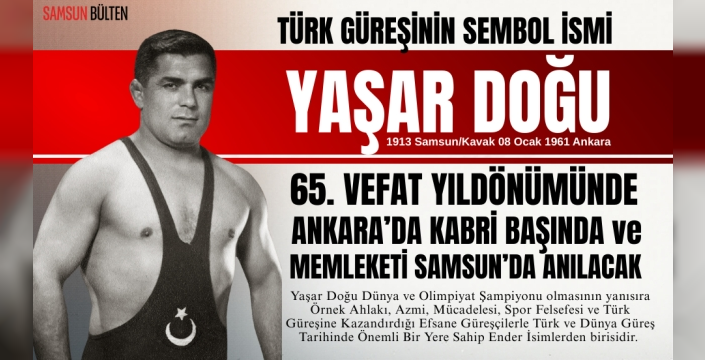 SAMSUN / ANKARA – Türk güreşinin efsane ismi, Dünya ve Olimpiyat Şampiyonu Yaşar Doğu, vefatının 65. yıl dönümünde Ankara ve memleketi Samsun’un Kavak ilçesinde düzenlenecek programlarla yad edilecek.