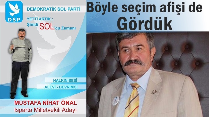 Elinde dolu rakı kadehiyle fotoğraf çektiren emekli öğretmen 56 yaşındaki Mustafa Nihat Önal, bu fotoğrafla 1000 afiş, 10 bin de kartvizit hazırlattı.