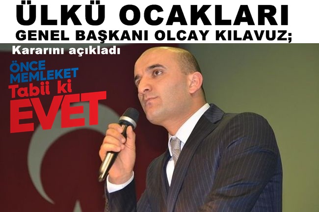 Ülkü Ocakları Genel Başkanlığı'nın Fatih'te bir otelde düzenlediği programda konuşan Olcay Kılavuz, Anayasa değişikliği referandumunda 'Evet' diyeceklerini açıkladı.
